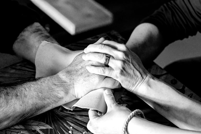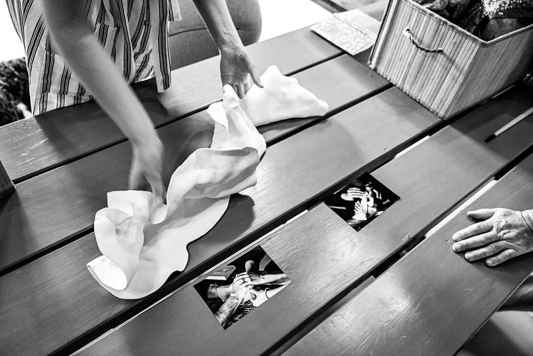 The moment before the making of a new piece, we take a moment to figure out the right hand gesture. This moments highlights how intuitively we normally hold someones hand.