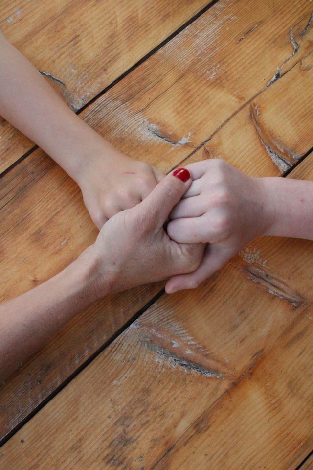 The moment before the making of a new piece, we take a moment to figure out the right hand gesture. This moments highlights how intuitively we normally hold someones hand.